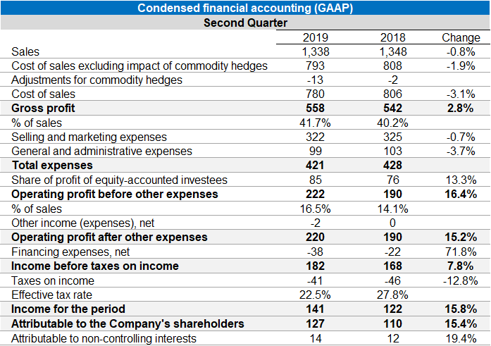 Strauss Group announces results for the second quarter of 2019, with stable sales as earnings and profit margins rise significantly