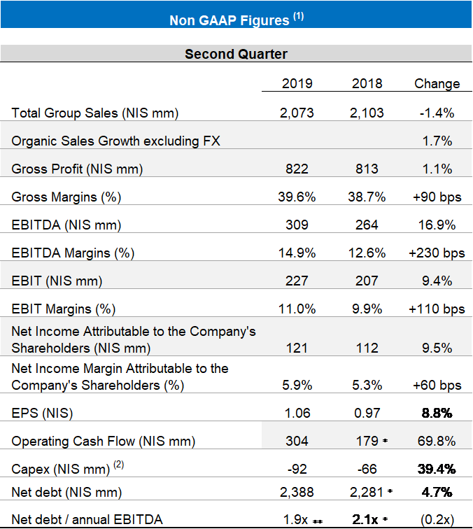 Sales in the quarter were NIS 2.07 billion, with organic sales up 1.7% excluding