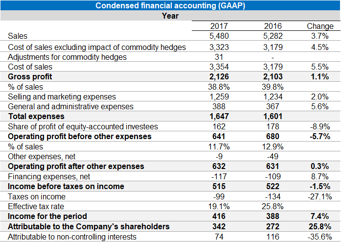 (1) Based on the Company’s non-GAAP figures, which include the proportionate consolidation of jointly controlled businesses (without implementation of IFRS 11) and do not include share-based payment, valuation of the balance of commodity hedging transactions as at end-of-period, including adjustments required for deferral of profit or loss from commodity derivatives until the inventory is sold to external parties, and other income and expenses, net, unless stated otherwise.