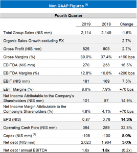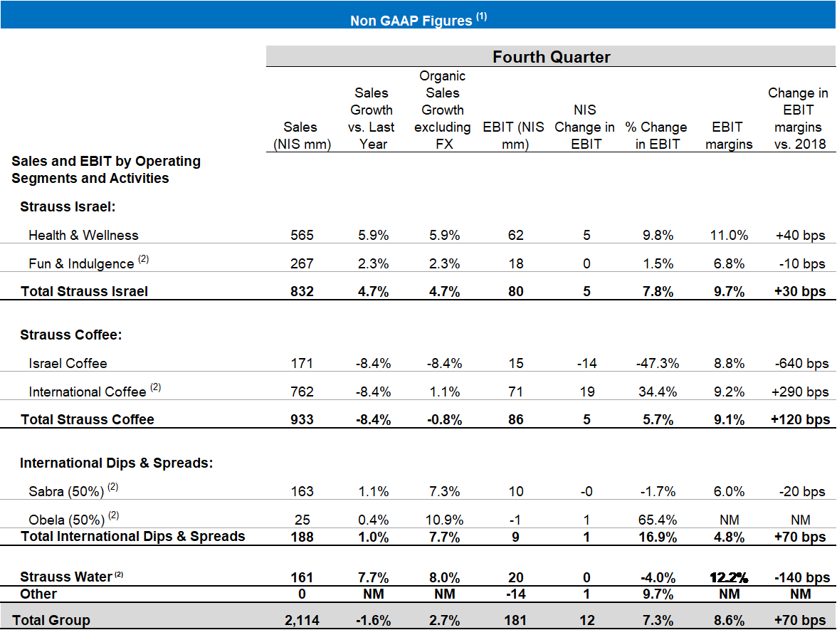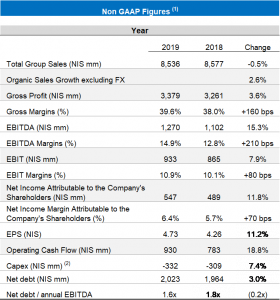 Strauss Group announces 2019 results with NIS 8.5 billion in revenue, 2.6% organic growth excluding foreign currency effects and a signifi-cant improvement in the Group’s profits