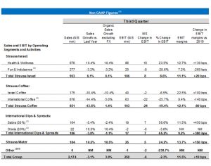 In total, Strauss Group delivered NIS 2.17 billion in revenue in the third quarter, while in the nine-month period revenue was NIS 6.3 billion, reflecting an increase of around 3.9% and 4.5%, respectively (organic, excluding FX), over last year. As a result of the weakening currencies, the company reported a drop of around 3.1% in revenue in the third quarter and of 2.2% in the nine months, compared to the corresponding periods last year.