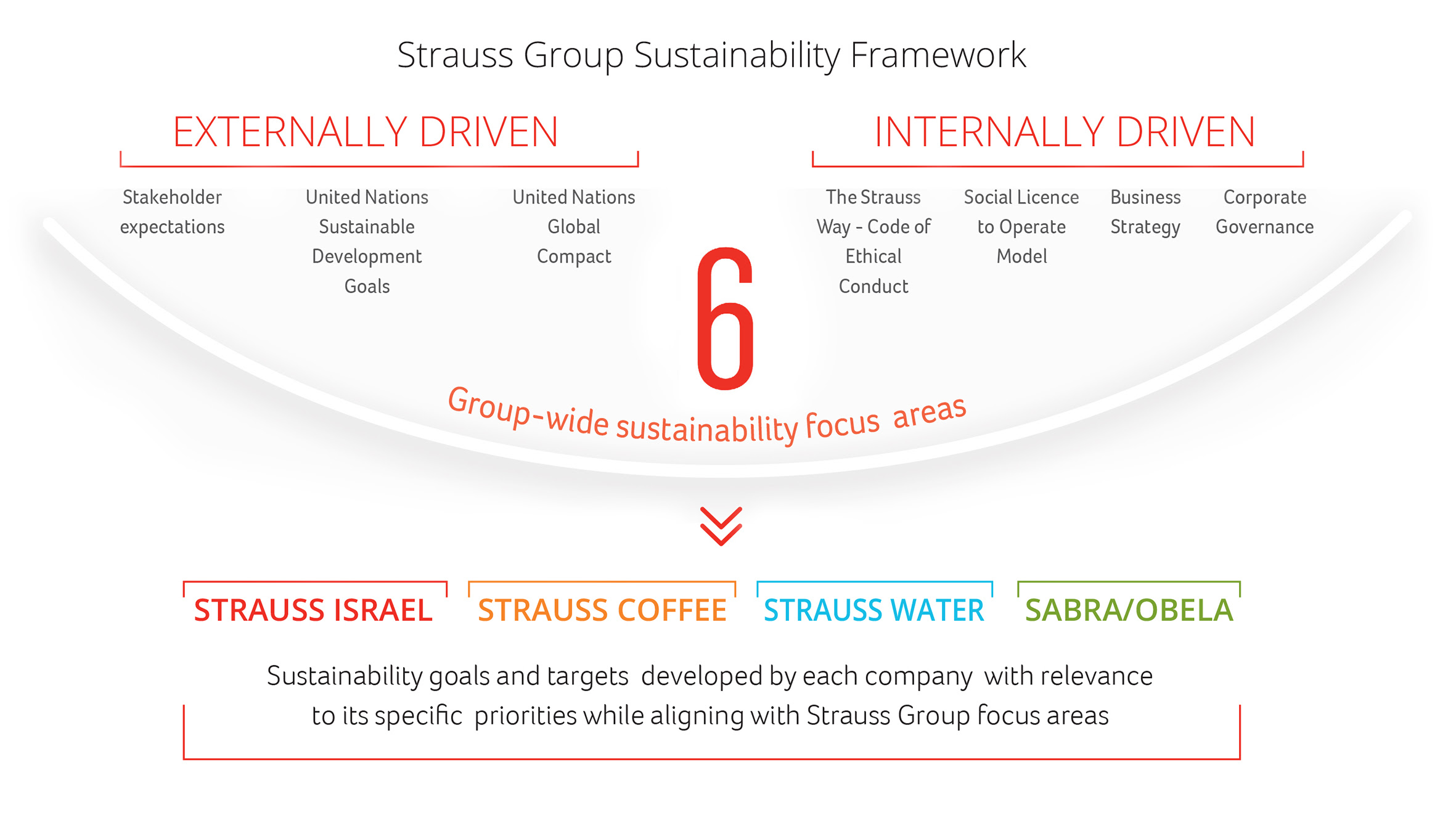 Our approach to sustainability is guided by internal drivers as well as globally defined expectations of business in society, that are a reflection of social needs around the world. As a company comprising four different businesses, we adhere to a guiding framework that is globally relevant, identifying six group-wide areas of focus that are relevant to our global business. Each company in the Group defines its individual goals and targets, based on its current business and stakeholder priorities and an assessment of specific risks and opportunities. In this way, we are able to move forward sustainably as a global Group while affording flexibility to each operating company. For a detailed view of priorities for each company, please see the section on Progress against Targets and examples of practice in different sections of this report